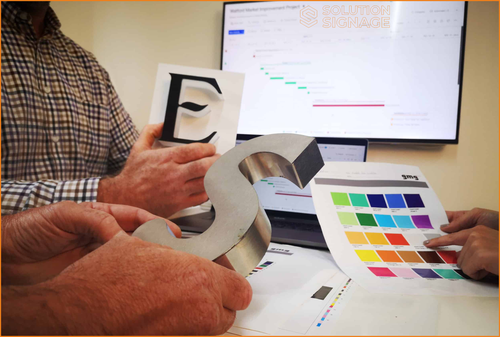 This is a key step where we bring material samples for you to review and approve in person. We also assess the installation environment—checking the space, lighting, and any other factors—to ensure the final signage fits perfectly and performs optimally in your specific location.